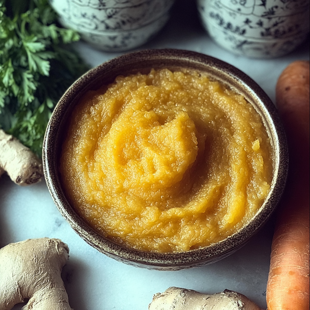 3. Blend the ingredients: Add cooked carrots, ginger, turmeric, and coconut oil to a blender or food processor.