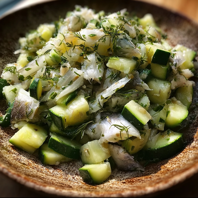 - Flake the fish into small pieces and gently mix with the zucchini.