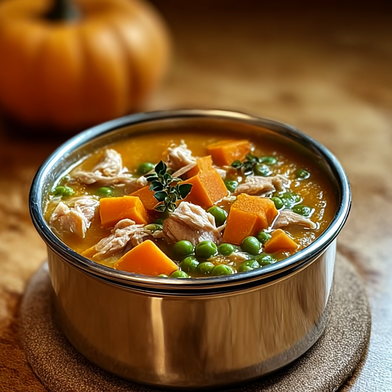 This soup is one of the easiest and most beneficial homemade meals you can prepare for your dog. Made with just a handful of dog-safe ingredients, it combines tender chicken with fiber-rich pumpkin and vegetables to create a soothing, protein-packed dish.